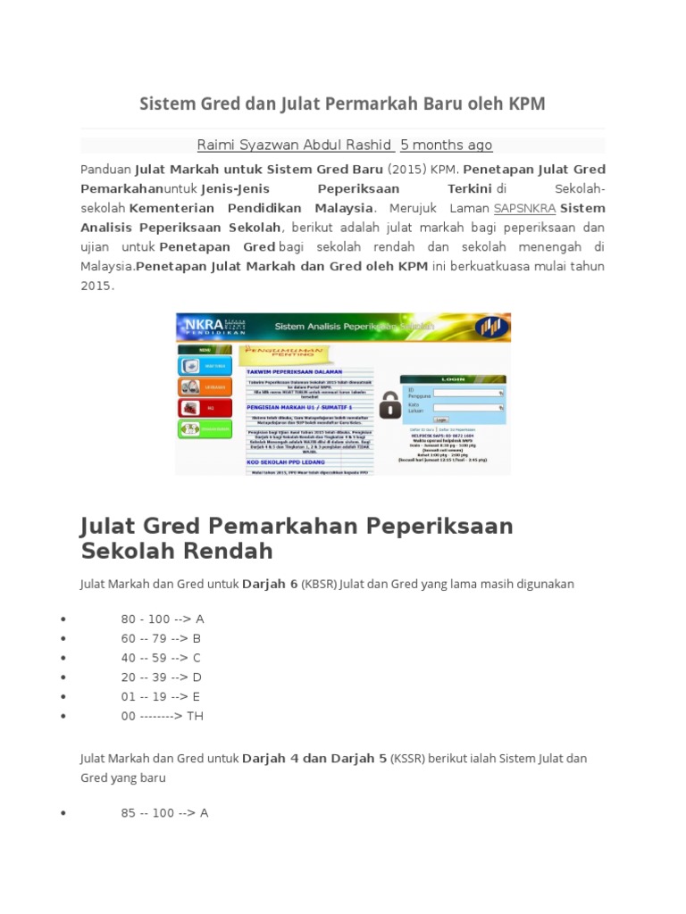 Related : Gred Markah Sekolah Rendah - Saps Login Semakan Ibu Bapa Ontrenz Update 2020 : Namun julat markah itu telah berubah dan kini disiarkan julat markah untuk gred tersebut..